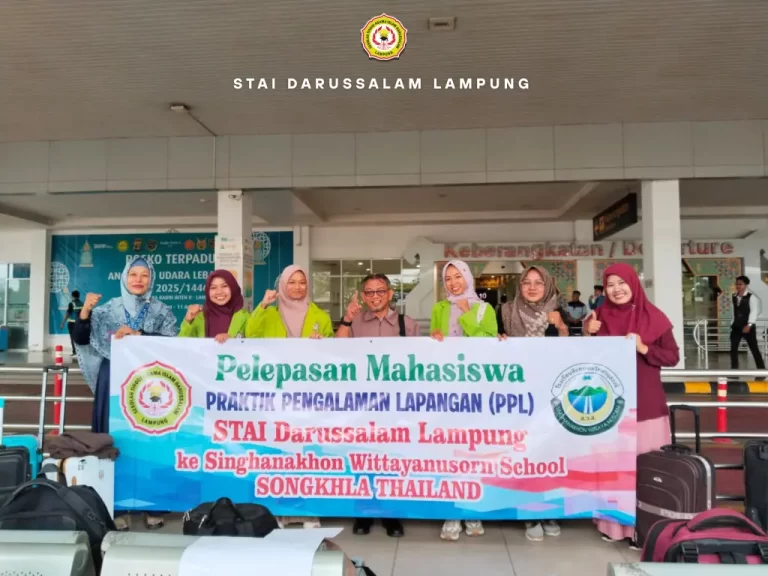 Lampung, 22 Mei 2025 — Pada Kamis, 22 Mei 2025, Sekolah Tinggi Agama Islam (STAI) Darussalam Lampung secara resmi melepas tiga mahasiswanya untuk menjalani Praktik Pengalaman Lapangan (PPL) di luar negeri, tepatnya di Singhanakhon Wittayanusorn School, Songkhla, Thailand. Tiga mahasiswa yang diberangkatkan adalah Khusnul Khotimah dan Wahyu Noviana dari Program Studi Pendidikan Agama Islam (PAI), serta…